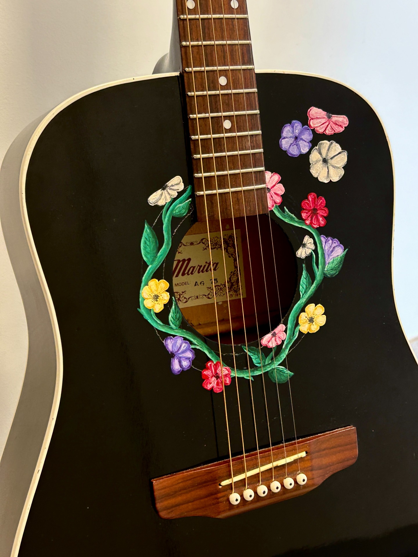 Dit was de allereerste gitaar die Kjella ooit beschilderde. Geïnspireerd door de bloemen op Taylor Swift's piano tijdens The Era's Tour.